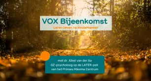 De Vereniging Kinderkanker Nederland (voorheen de Vereniging Ouders, Kinderen en Kanker (VOKK) is er voor iedereen die te maken heeft (gehad) met kinderkanker. Bij ons kun je terecht voor ervaringsdeskundige informatie, herkenning, steun en een luisterend oor. Want wie begrijpt je beter dan iemand die hetzelfde meegemaakt heeft?