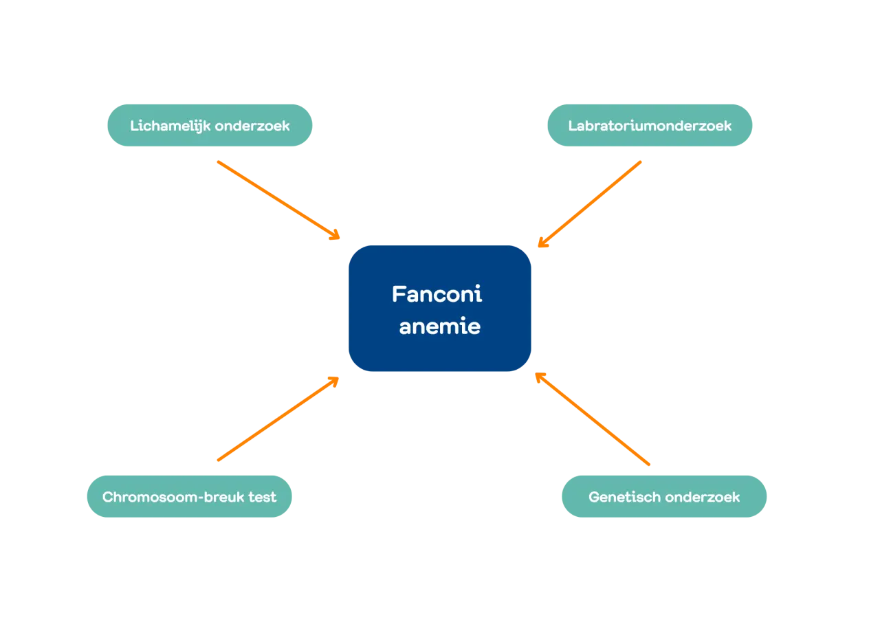 FA wordt veroorzaakt door een verandering in het erfelijk materiaal, een zogenoemde ‘mutatie’. Deze mutatie zorgt ervoor dat schade aan het DNA minder makkelijk gerepareerd kan worden. Hierdoor kunnen de chromosomen, waarin het DNA in de cellen opgerold zit, makkelijker breken. Of dit inderdaad het geval is, onderzoeken de artsen met een chromosoom-breuk test. Met deze test kan in de meeste gevallen de diagnose FA definitief gesteld worden.