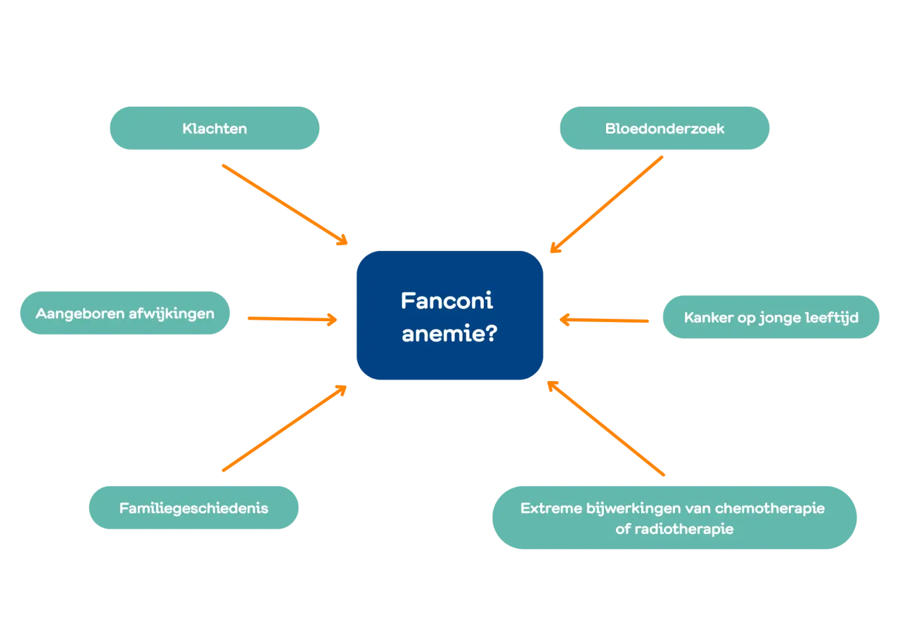 Daarnaast denken artsen soms aan FA wanneer meerdere familieleden op jonge leeftijd beenmergfalen of leukemie hebben gehad, of wanneer de aandoening al bij een familielid is vastgesteld.