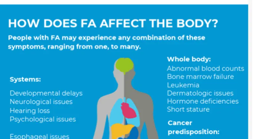 Mensen met FA kunnen afwijkingen hebben in de groei, het skelet en/of de organen. Veel van deze ken...