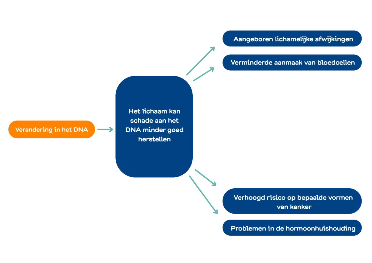 Fanconi anemie (FA) is een zeer zeldzame, erfelijke aandoening. Door een verandering in het DNA, ook wel genetische mutatie, kan het lichaam schade aan dit DNA minder goed herstellen. Dat maakt het beenmerg, de organen en sommige lichaamsprocessen kwetsbaarder.
