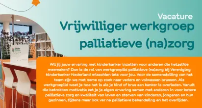 Gemiddeld een halve dag per twee weken (in overleg in te delen) ben je aanwezig bij de balie van de Vereniging Kinderkanker Nederland in het Prinses Máxima Centrum. Je bent beschikbaar voor gezinnen en bezoekers van de LATER-poli voor een luisterend oor, je beantwoordt vragen en biedt praktische hulp. Net waar behoefte aan is. Bij vragen die je niet kunt beantwoorden adviseer je om de behandelend arts te raadplegen of een andere zorgprofessional. Ook heb je een signalerende functie om verbeterpunten op te merken en terug te koppelen. Jouw aanwezigheid kan hoop bieden. En als je het leuk vindt kun je ook bij (VOX)activiteiten en -bijeenkomsten ondersteunen.