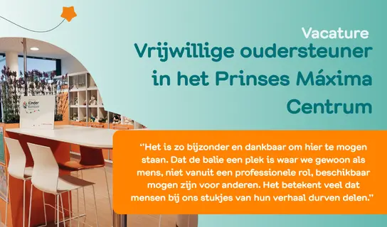 Gemiddeld een halve dag per twee weken (in overleg in te delen) ben je aanwezig bij de balie van de Vereniging Kinderkanker Nederland in het Prinses Máxima Centrum. Je bent beschikbaar voor gezinnen en bezoekers van de LATER-poli voor een luisterend oor, je beantwoordt vragen en biedt praktische hulp. Net waar behoefte aan is. Bij vragen die je niet kunt beantwoorden adviseer je om de behandelend arts te raadplegen of een andere zorgprofessional. Ook heb je een signalerende functie om verbeterpunten op te merken en terug te koppelen. En als je het leuk vindt kun je ook bij activiteiten en bijeenkomsten ondersteunen.